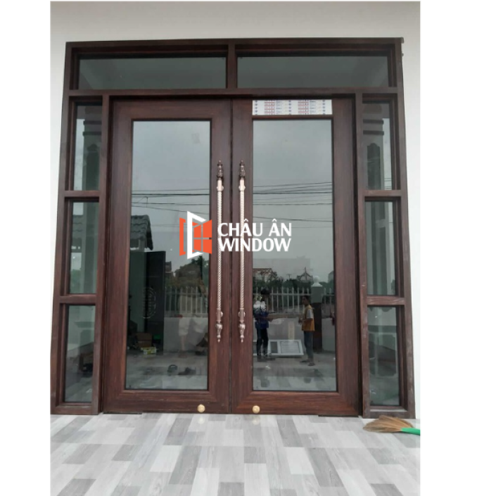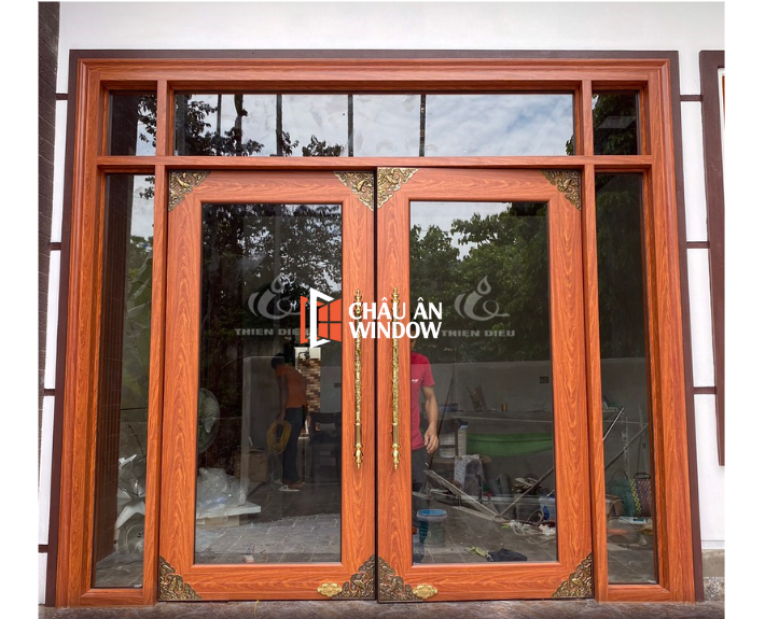 Cấu tạo cửa nhôm hệ thủy lực màu gỗ hương